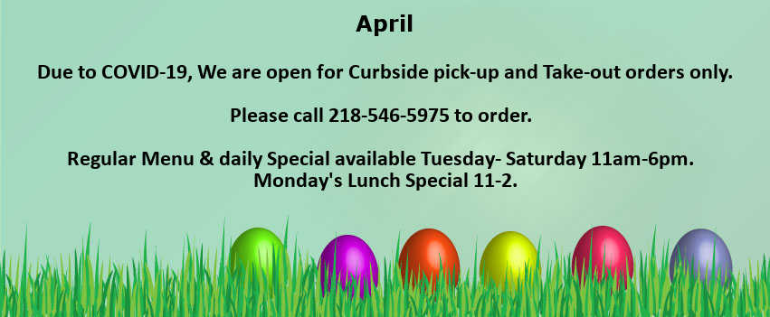 We will also be offering FREE hot meals for School Children. Please Call a day in advance to schedule a pick up! 218-546-5975 or 218-851-6772 (Liz).