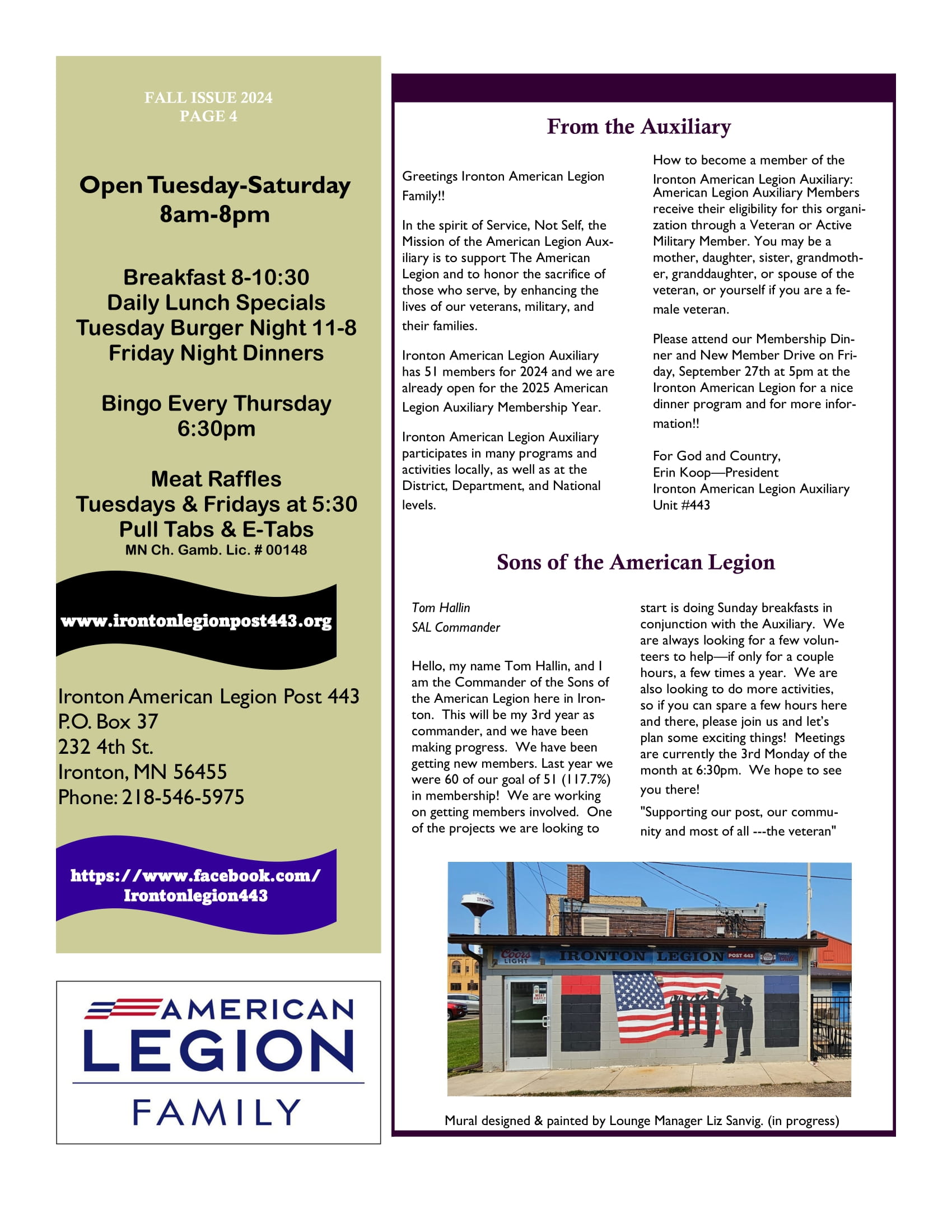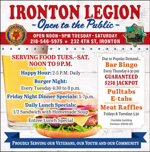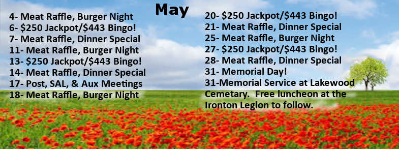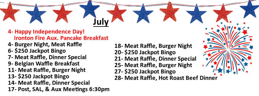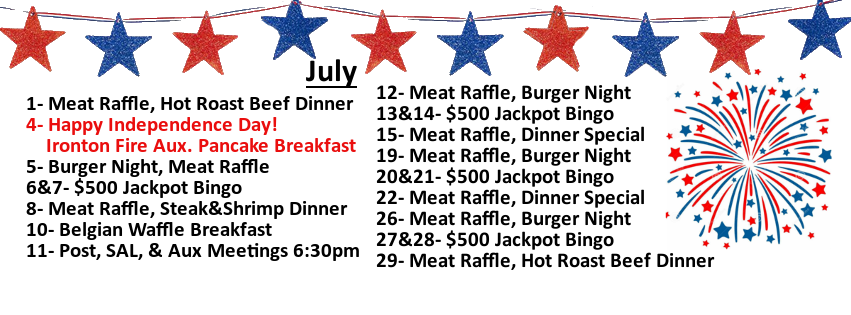 Hosted by The Ironton Legion Auxiliary, all proceeds stay within our community.